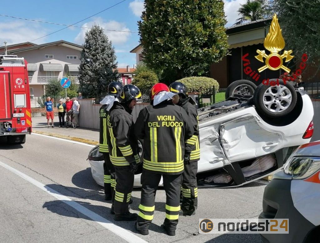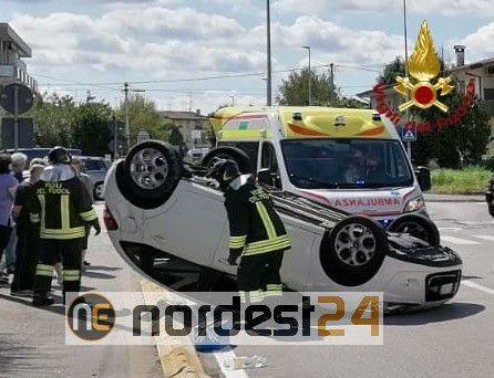 Porcia, scontro tra due auto: una finisce ruote all'aria