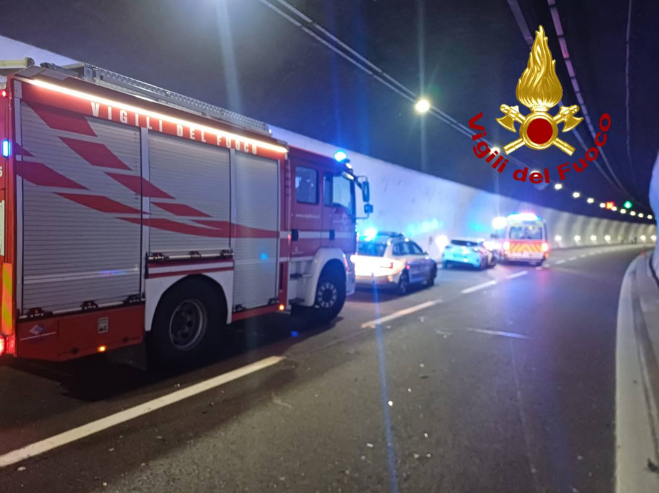 Secondo le prime informazioni, un’autovettura avrebbe tamponato violentemente un autoarticolato, impattando contro la parte posteriore del mezzo pesante mentre entrambi stavano transitando all’interno della galleria.