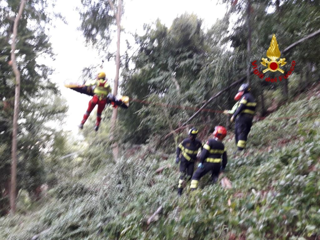L'uomo, un 67 del posto, dopo essere stato colpito dall'albero è riuscito a dare l'allarme con il cellulare, avvertendo alcuni familiari, i quali hanno allertato i soccorsi.