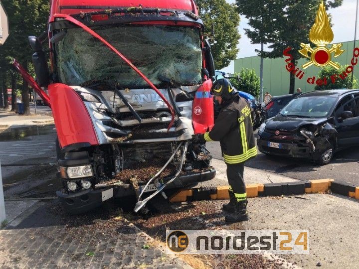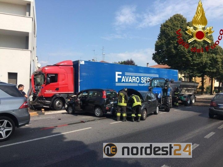 Due squadre dei Vigili del Fuoco del distaccamento di San Vito al Tagliamento sono intervenute a Casarsa della Delizia sulla SS 13, in via Biasutti all'altezza del civico 59, per un tamponamento che ha coinvolto cinque veicoli: un autoarticolato, un trattore con rimorchio e tre autovetture.