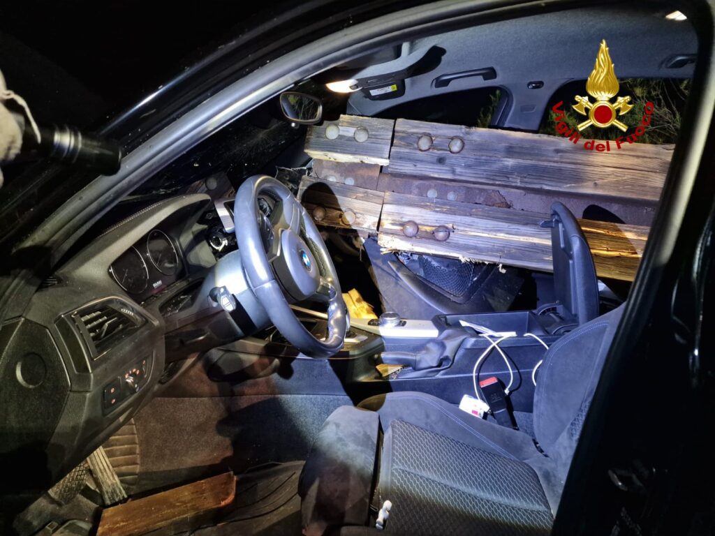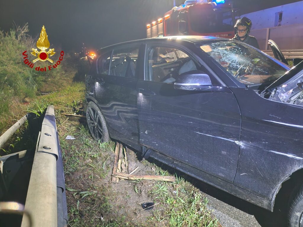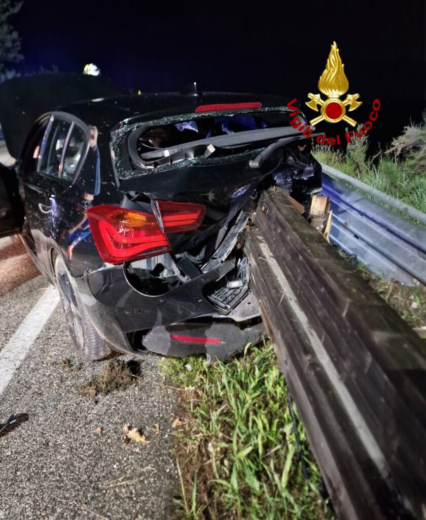 Esce di strada e centra il guardrail che penetra nell'auto: due feriti