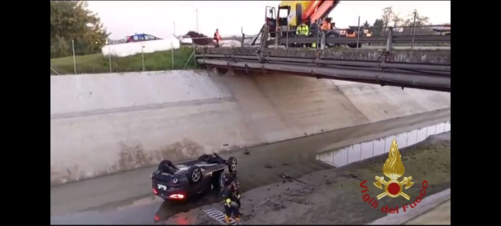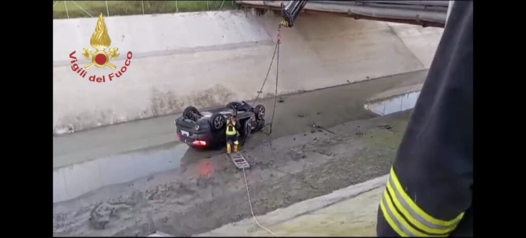 Auto fuori controllo vola nel canale, trancia un tubo del gas metano e si ribalta | VIDEO - FOTO