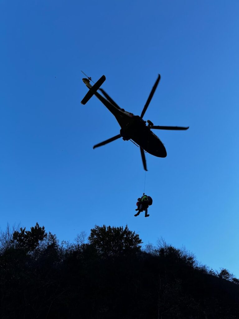 Gli addetti ai soccorsi sono arrivati tempestivamente e si sono calati dall'alto con l'ausilio delle corde per raggiungere l'infortunato.