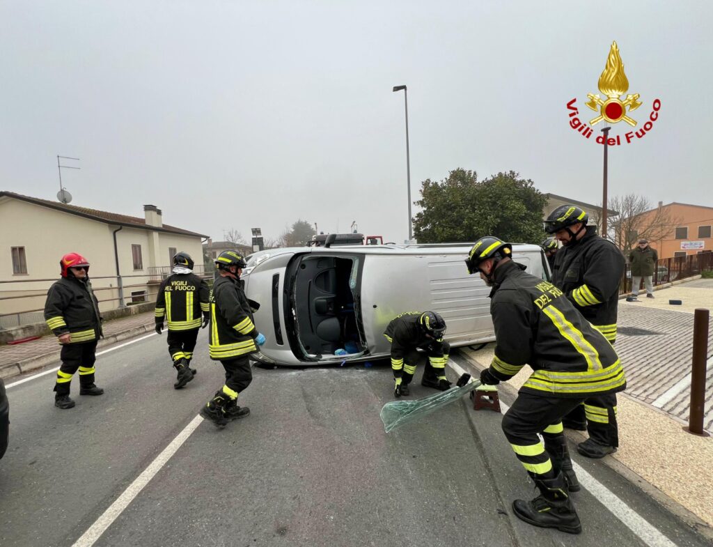 Scontro tra due furgoni, il mezzo adibito al trasporto dei disabili si ribalta: 5 feriti