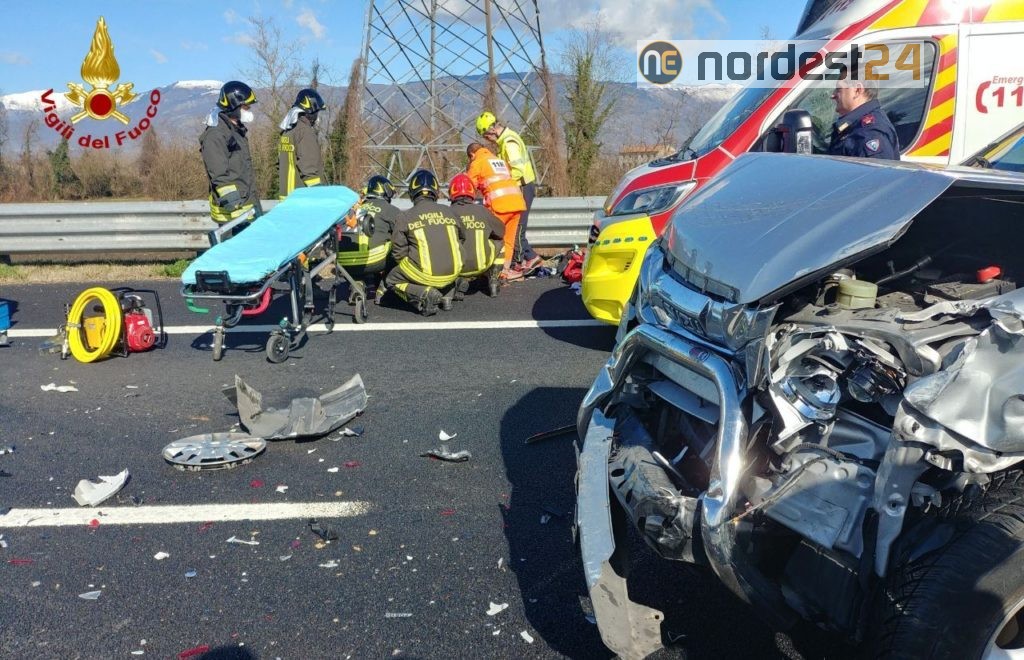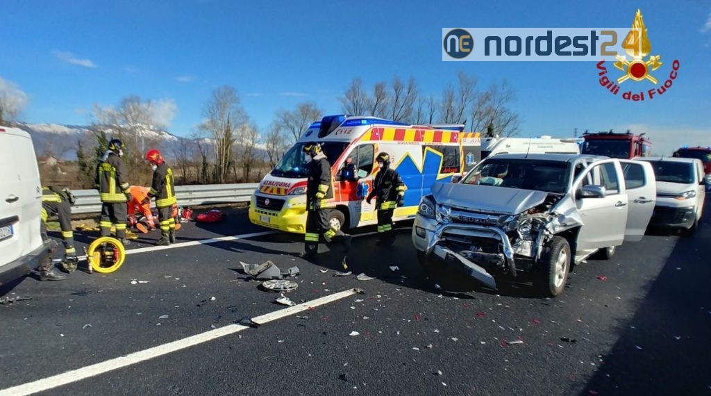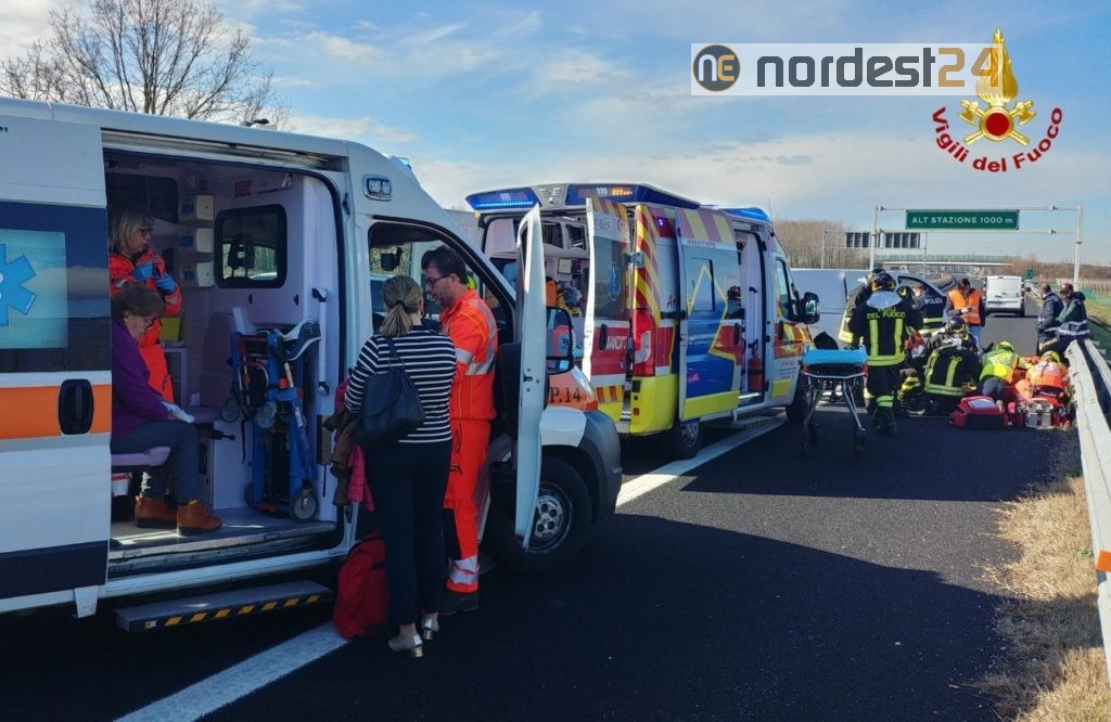 La circolazione sulla carreggiata in direzione Conegliano è rimasta bloccata per consentire le operazioni di soccorso e la rimozione dei mezzi incidentati.
