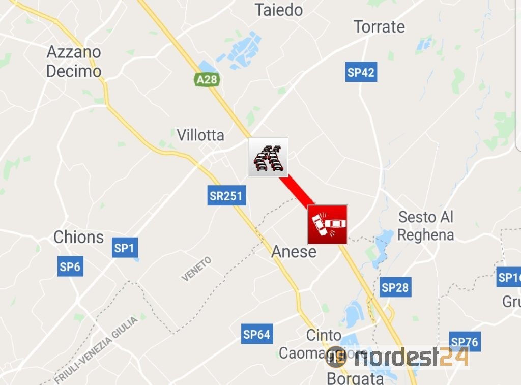 Incidente in A28 tra Villotta e Sesto al Reghena: traffico bloccato