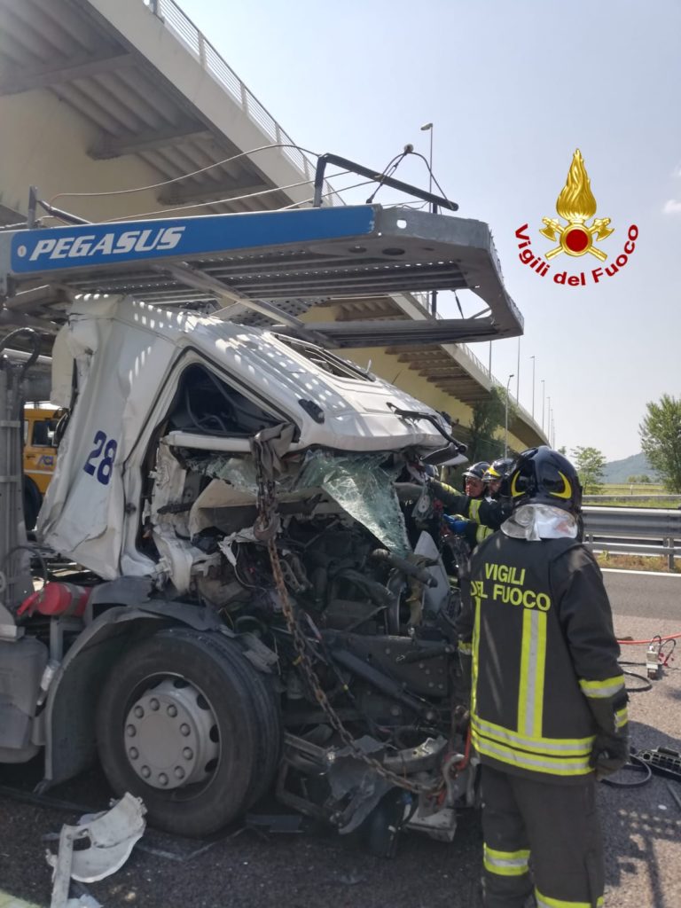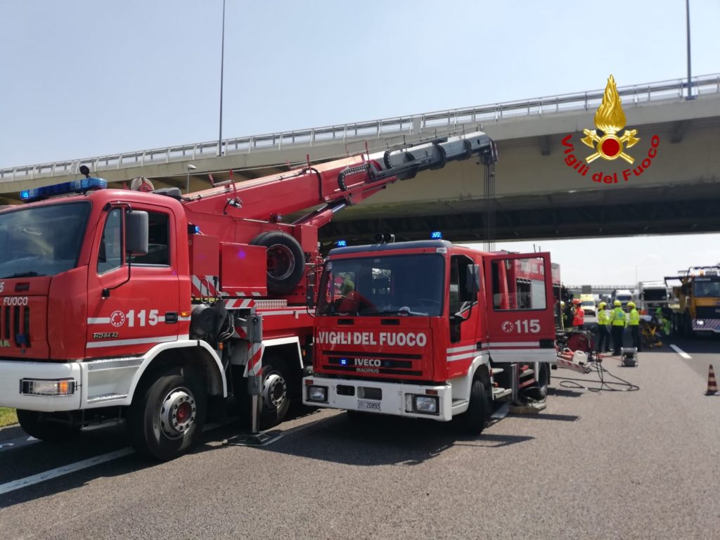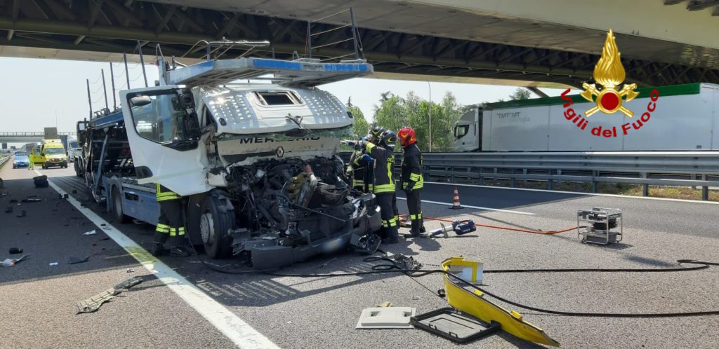 Incidente in A4: intrappolato tra le lamiere l'autista di una bisarca