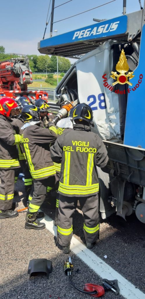 Le squadre dei vigili del fuoco arrivate da Vicenza e Padova anche con l’autogrù, hanno lavorato per oltre venti minuti con martinetti e divaricatori idraulici per riuscire a liberare l’autista, rimasto intrappolato nella cabina di guida completamente deformata.