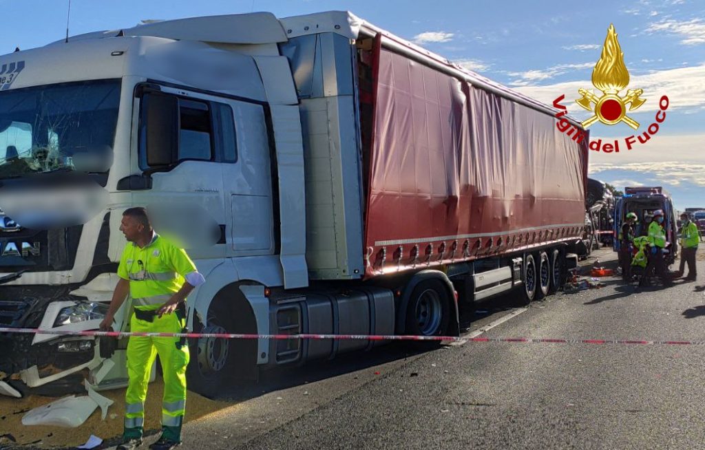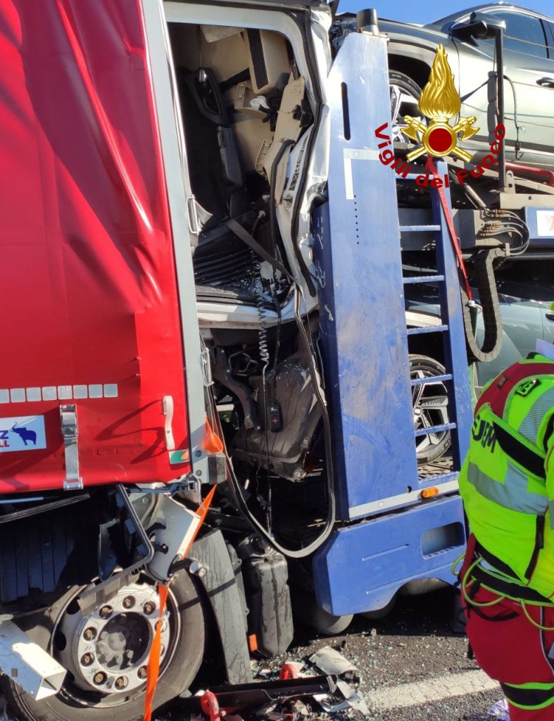 Il sinistro è avvenuto poco prima delle 6,45 di oggi mercoledì 8 giugno e ha riguardato tre mezzi pesanti. A causa dell’impatto una persona risulta incastrata nella cabina del mezzo. Sul posto la polizia stradale, i vigili del fuoco, il 118, il personale di Autovie Venete e i mezzi di soccorso meccanico.