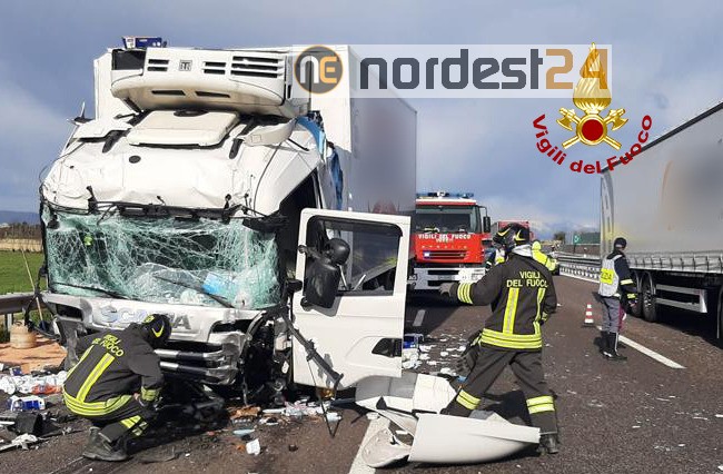 I pompieri arrivati da Vicenza e Padova con tre squadre, hanno messo in sicurezza i mezzi ed utilizzando cesoie, martinetti e divaricatori idraulici liberato l’autista di un camion, rimasto incastrato al posto guida.