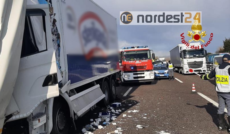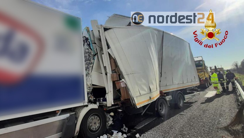 Incidente in A4 tra 3 mezzi pesanti: un autista rimane incastrato