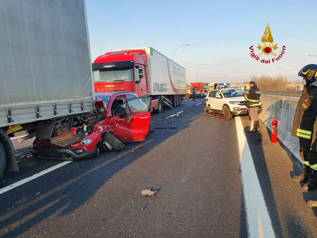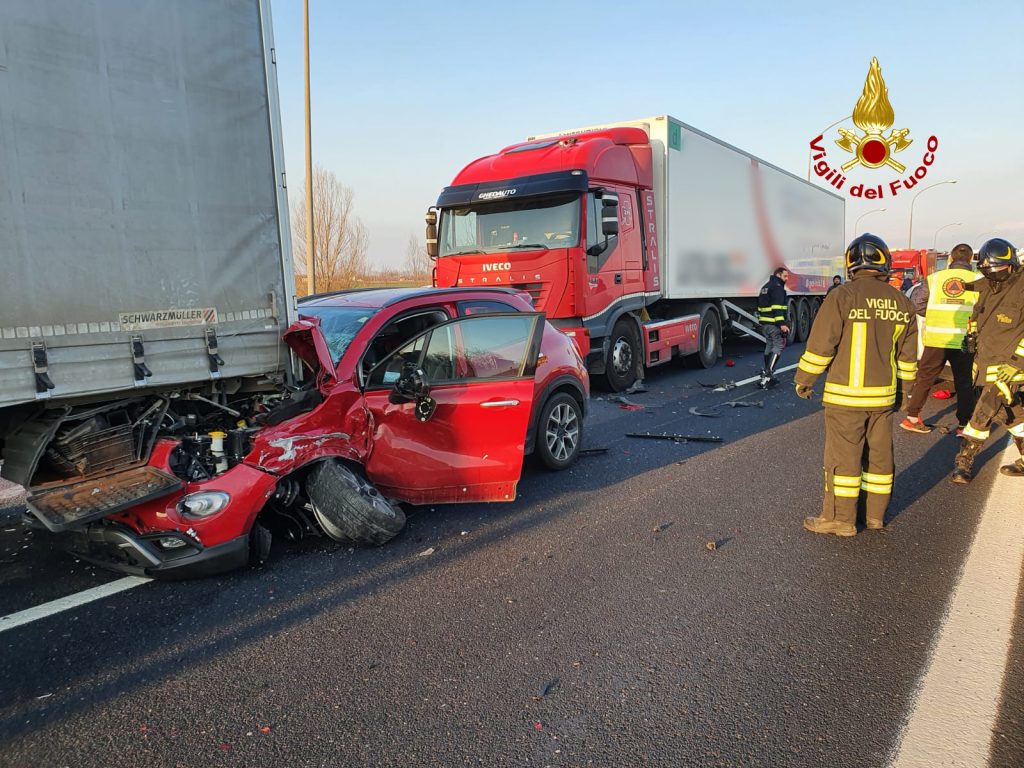 Tragedia sfiorata oggi lunedì 28 febbraio 2022 in autostrada. Poco prima delle 16:30 i vigili del fuoco sono intervenuti in A4 poco prima dello svincolo di San Stino in direzione Venezia per un incidente tra due mezzi pesanti e due auto: nessuna persona è rimasta ferita, "miracolato" il conducente del veicolo leggero che ha tamponato con violenza un camion.