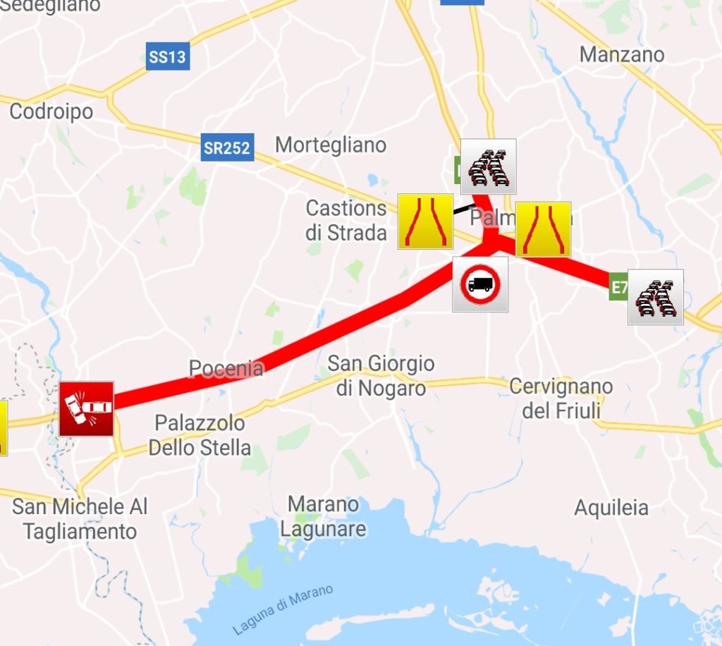 Inoltre Autovie Venete segnala code per traffico intenso tra Udine sud e il bivio A4 A23.