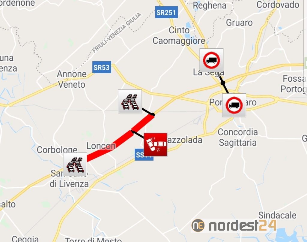 Attualmente (ore 14,30) ci sono code fra San Donà di Piave e Portogruaro in direzione Trieste e fra Portogruaro e San Stino verso Venezia.