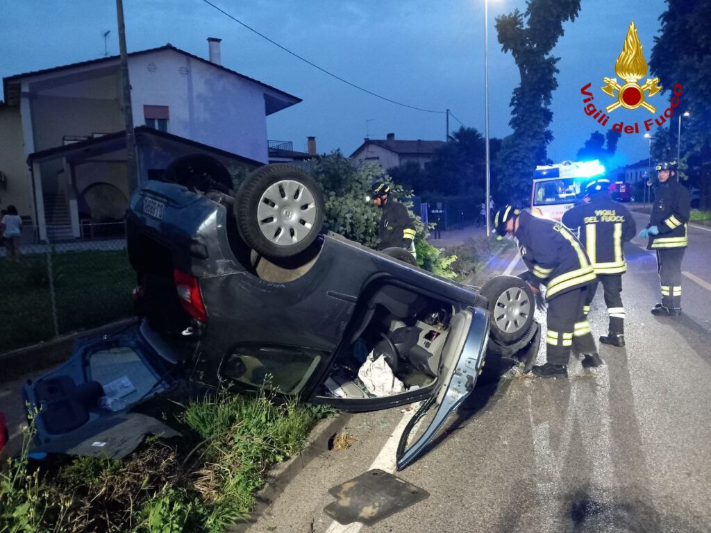 Incidente ad Istrana, vola con l'auto e si ribalta: conducente miracolato, ne esce illeso