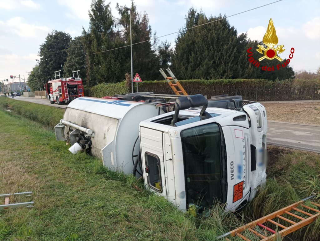 Autocisterna con oltre 11mila litri di gasolio si rovescia in un fossato