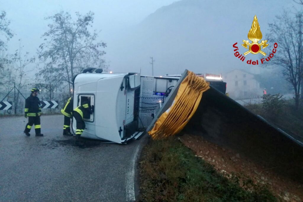 Autoarticolato finisce rovesciato fuori strada: ferito l'autista