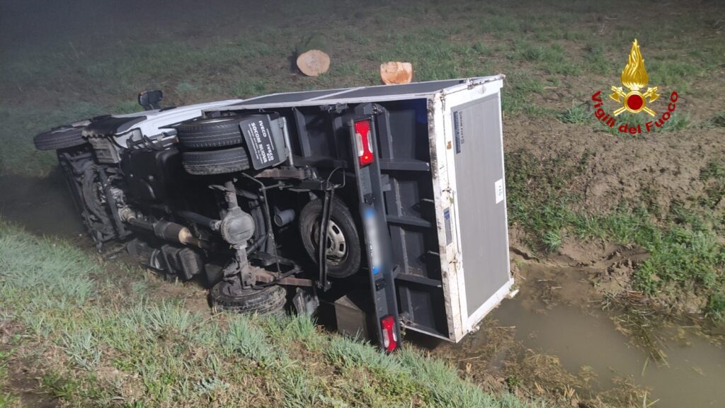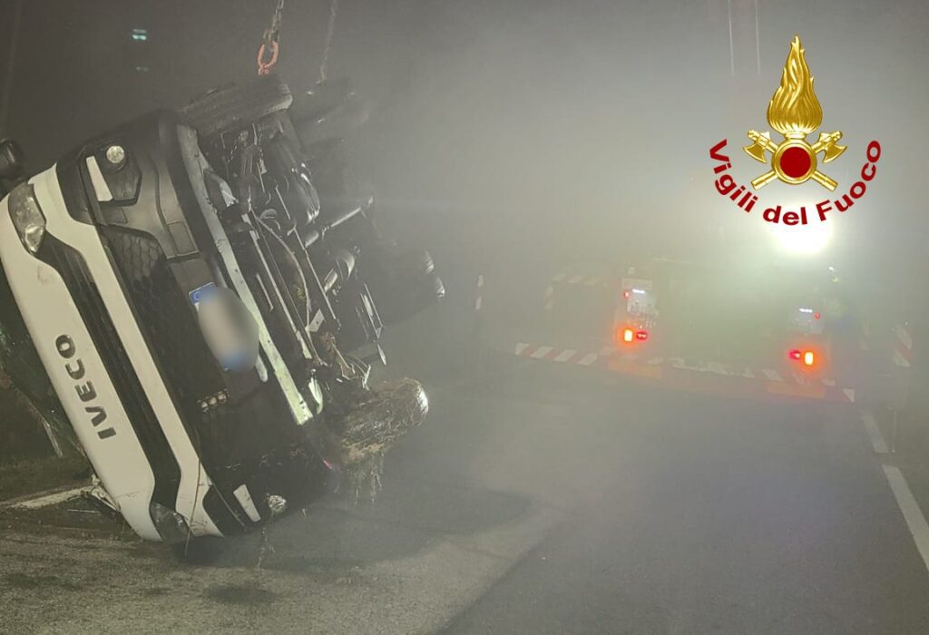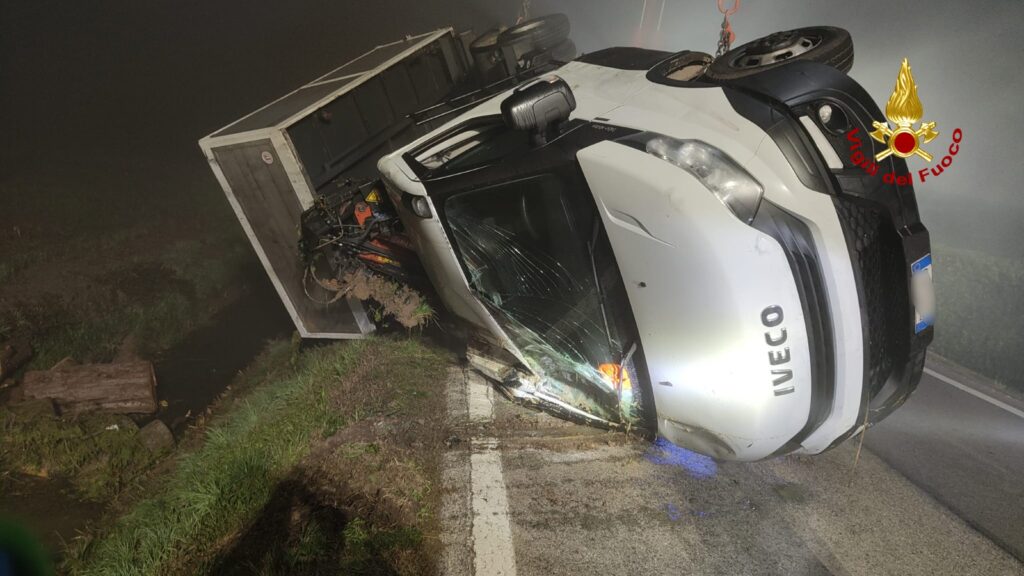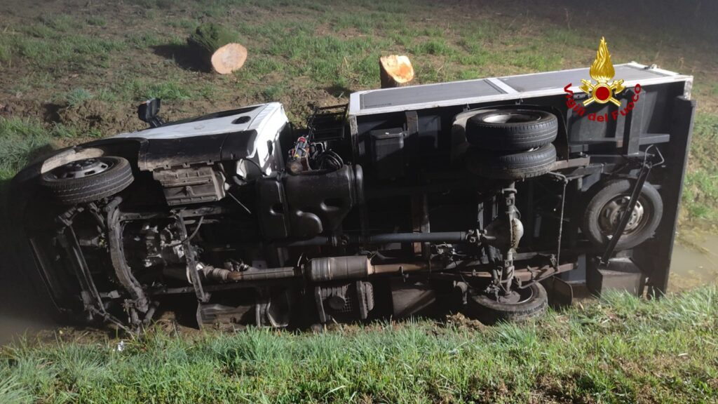 Le operazioni di soccorso dei Vigili del Fuoco sono terminate alle 5 con il recupero del furgone e del carico da parte dell’autogrù.