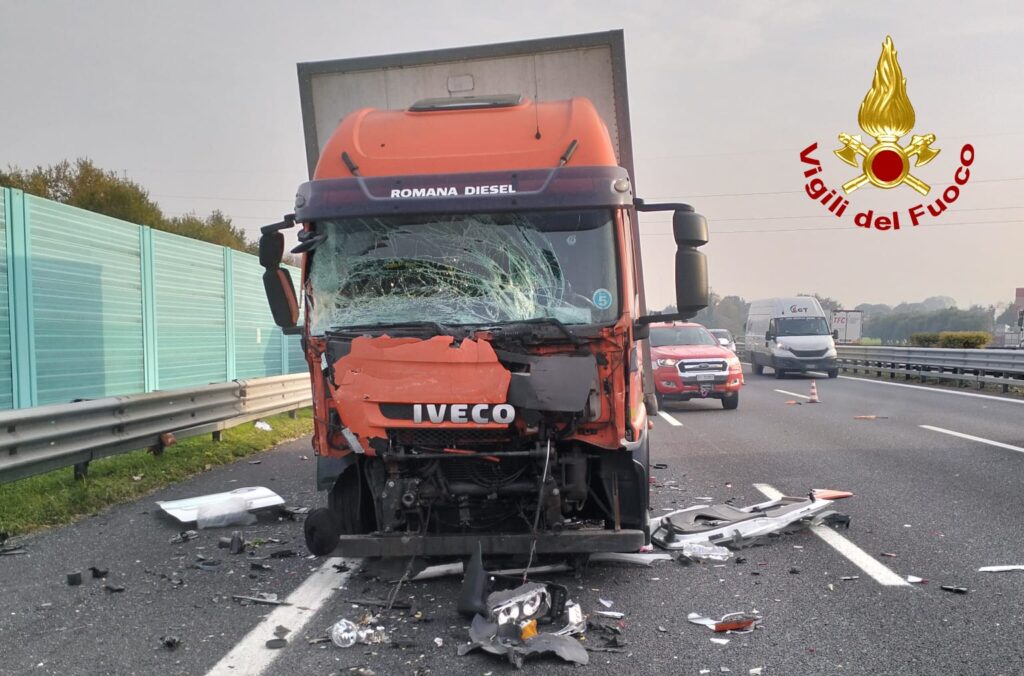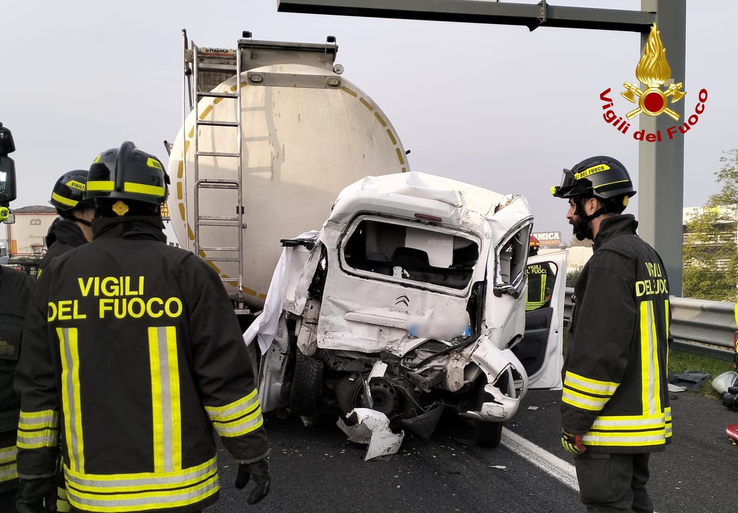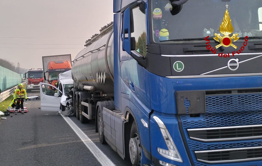 Tragico scontro in A4: furgone stretto nella morsa di due camion, perde la vita una donna, 2 feriti