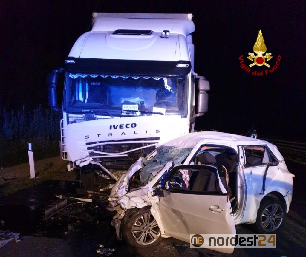 Alle 20 circa, i vigili del Fuoco sono intervenuti lungo la strada Romea 308 a Lova di Campagna Lupia per un incidente frontale tra un'auto e un camion: deceduto l'automobilista 68enne.