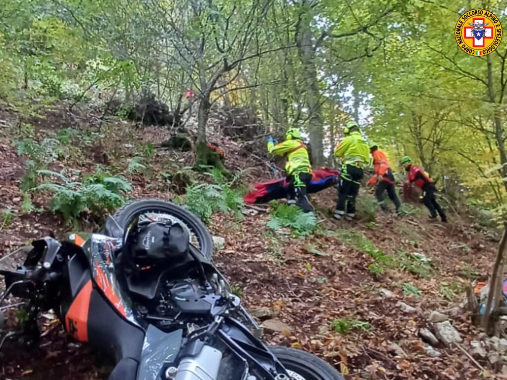 Esce di strada con la moto e vola di sotto per 30 metri: soccorso un centauro
