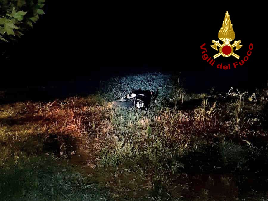 CAMPOSANPIERO. Domenica sera alle 21:00, i vigili del fuoco sono intervenuti in Via Molino Nuovo a Camposampiero in provincia di Padova per un motociclista finito fuoristrada in mezzo a un campo agricolo.