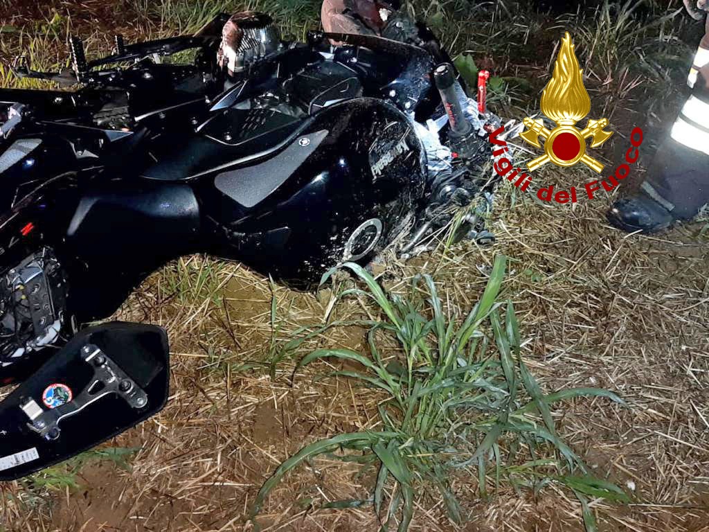 Finisce con la moto in mezzo a un campo agricolo: gravissimo un centauro
