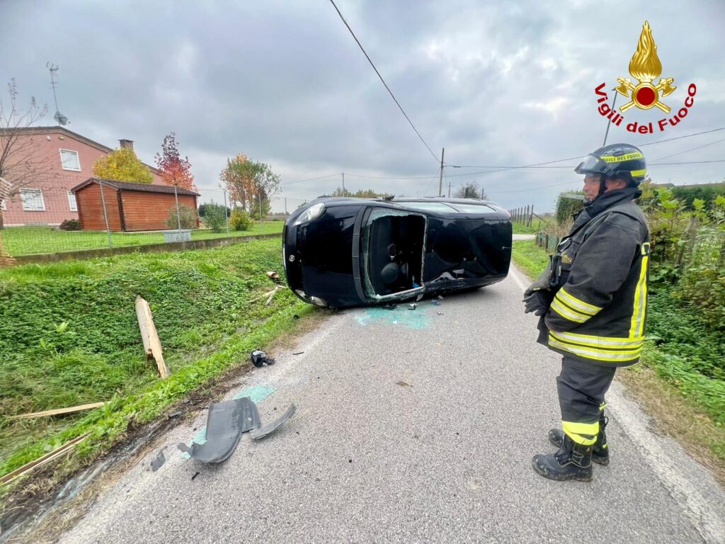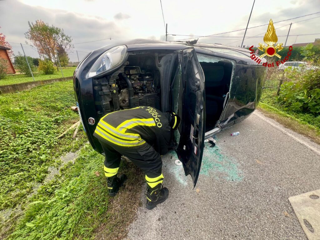 POLVERARA (PADOVA). Un grave incidente stradale si è verificato nel primo pomeriggio di oggi, quando una conducente ha perso il controllo della sua auto, ribaltandosi in Via Fossalunga.