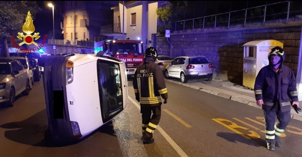 Giunti sul posto, i VV.F, hanno trovato un veicolo che, per cause ancora da accertare, si era ribaltato sulla sede stradale.