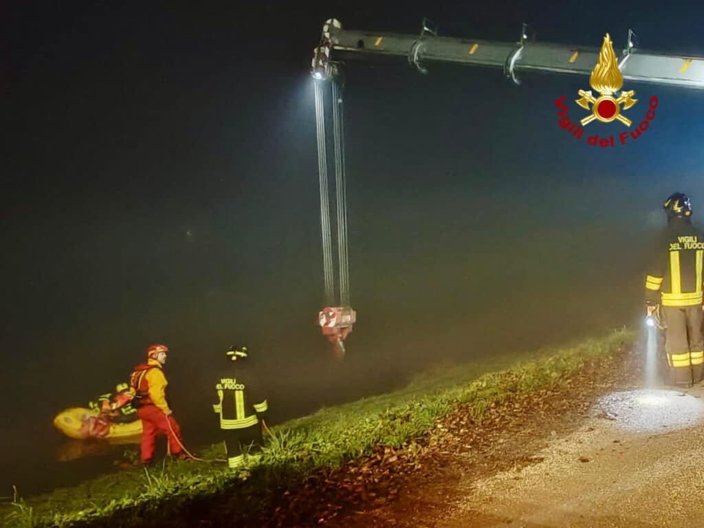 Incidente a Saonara: auto finisce nell'idrovía, una giovane donna è salvata dal fratello. I Vigili del Fuoco recuperano il veicolo.