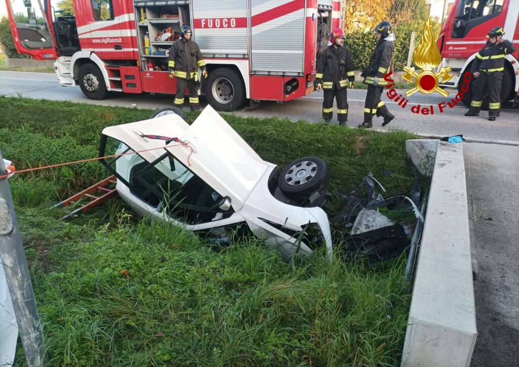 SCORZÈ. Alle 8:00, di sabato, i vigili del fuoco sono intervenuti in Via Castellana a Scorzè in provincia di Venezia per un’autovettura finita rovesciata in un canale di scolo contro il muro in cement...