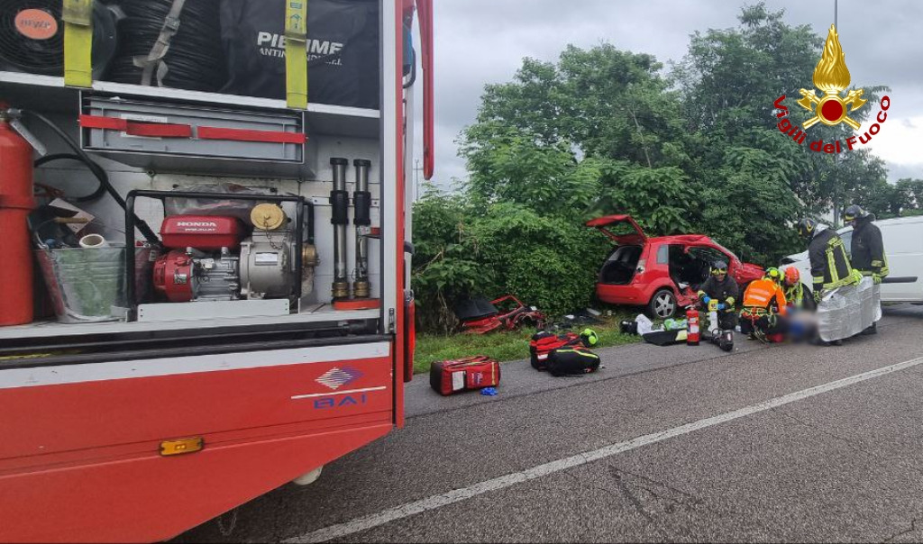 Alle 17.05 circa di oggi, 05 giugno 2023, la squadra del distaccamento dei Vigili del fuoco di Codroipo (UD) è intervenuta a Sedegliano (UD) per un’incidente stradale che ha coinvolto due veicoli. I Vigili del fuoco appena giunti sul posto, hanno iniziato le operazioni per estricare da una delle due vetture il conducente che ferito ma cosciente era incastrato nell’abitacolo.