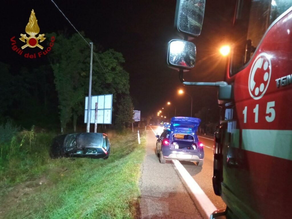Spresiano. Auto si ribalta nel fossato sulla SS13: tre feriti
