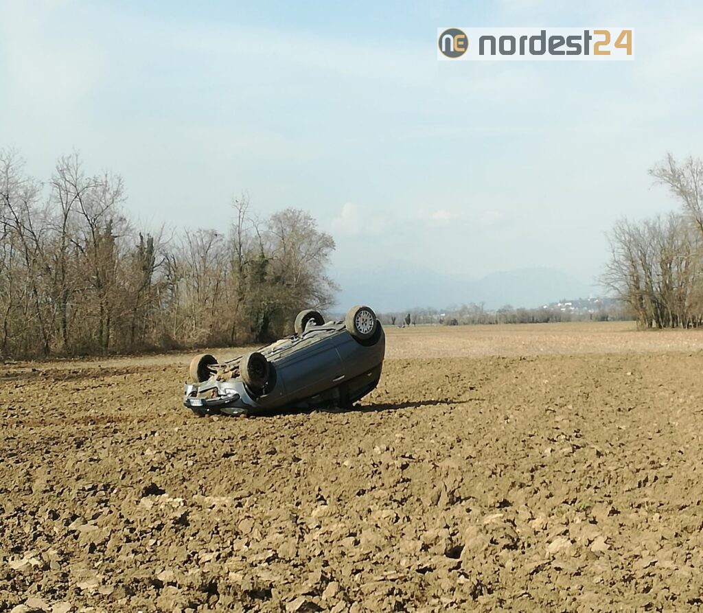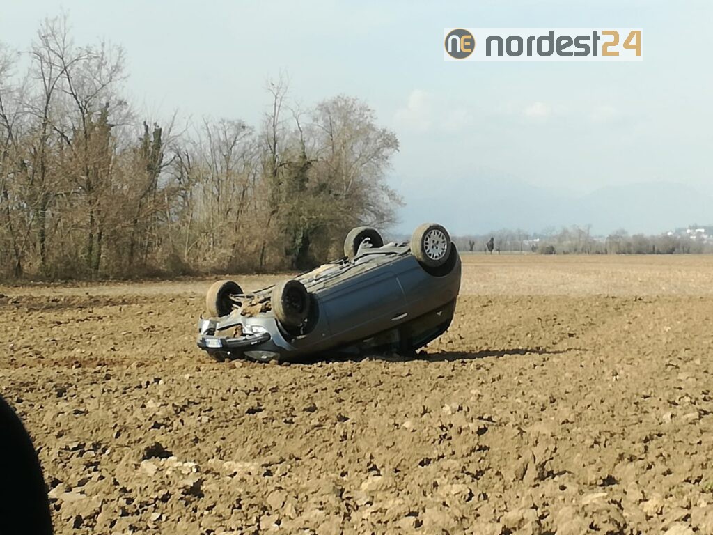 Uno dei due mezzi dopo il violento impatto si è ribaltato terminando la propria corsa nel campo vicino.