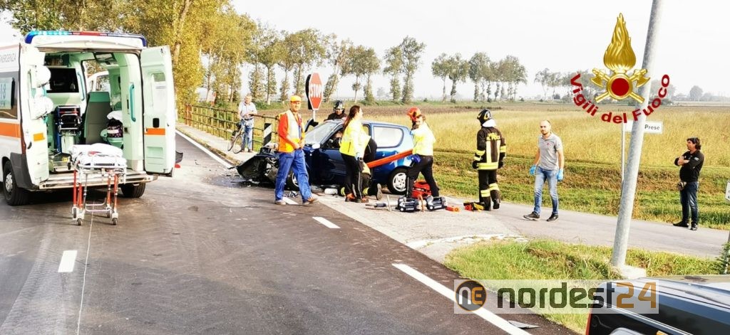 I pompieri accorsi da Portogruaro hanno messo in sicurezza i mezzi ed estratto da una fiat Seicento il conducente rimasto incastrato al posto guida, che è stato stabilizzato dal personale del suem 118 per essere poi trasferito in ospedale in eliambulanza.