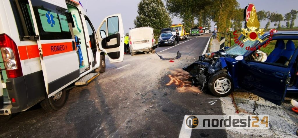 SAN STINO DI LIVENZA. Alle 16 circa, i vigili del fuoco sono intervenuti all’incrocio tra via Prese e via Caorle a San Stino di Livenza per un incidente stradale tra tre auto: quattro feriti di cui uno grave.