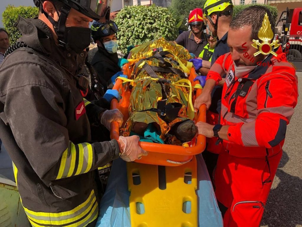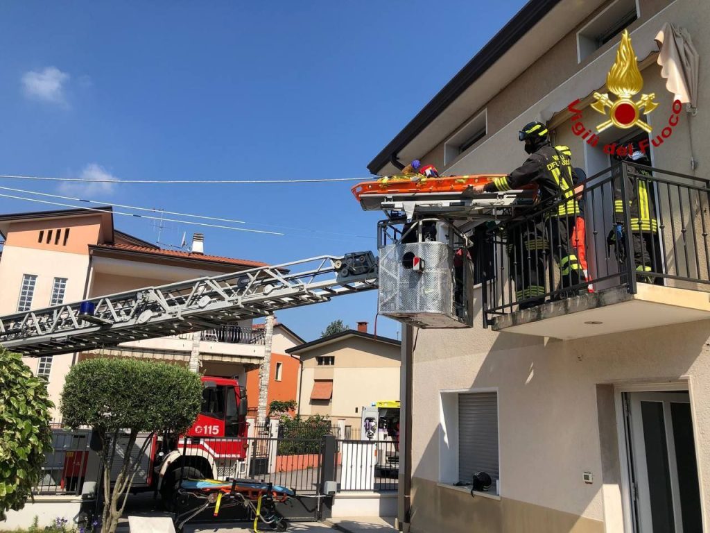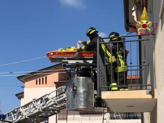 Mentre il Personale Sanitario (giunto con ambulanza ed automedica) stabilizzava la vittima, i pompieri, con l'ausilio dell'autoscala a causa dello stretto giroscale, provvedevano ad evacuarlo al piano terra in sicurezza
