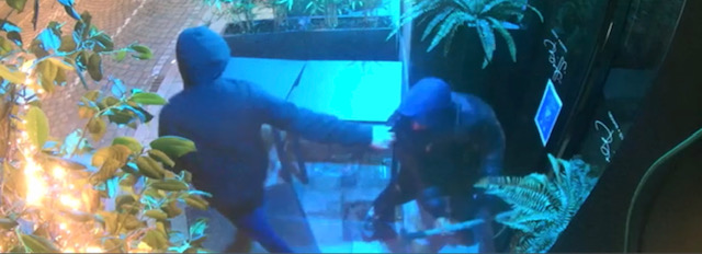 L'ingresso del locale fino al bancone della cassa risulta distutto, inseguimenti per le vie cittadine per assicurare alla giustizia i soggetti malfattori.