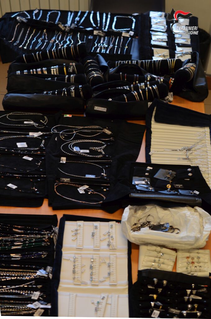 I predetti 5 complici sono autori di un furto di gioielli in oro ed argento commesso circa un’ora prima a San Donà di Piave, presso un parcheggio pubblico, dove i malviventi avevano inseguito, da Udine, un rappresentante orafo venuto nella mattinata in Friuli dal Veneto per incontrare alcuni suoi clienti.