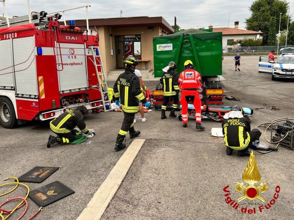 I Vigili del Fuoco del distaccamento di San Vito al Tagliamento sono intervenuti poco dopo le ore 8.00 presso un'azienda di Ramuscello a Sesto al Reghena per prestare soccorso a una persona investita da un'autocarro con rimorchio in manovra di retromarcia nel piazzale dell'azienda stessa.