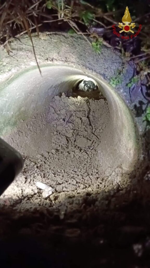 PRAMAGGIORE (VE). Era rimasto bloccato in una tubazione di scolo dell’acqua e non riusciva più ad uscire.