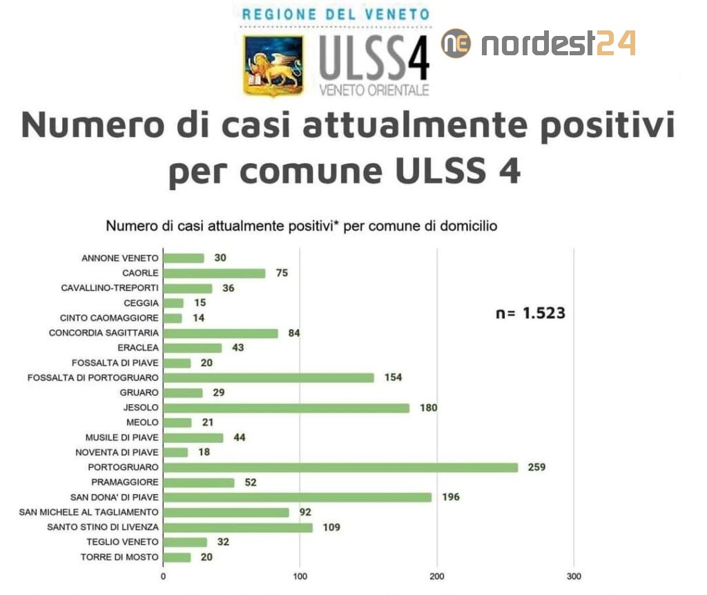 Nel territorio dell’Ulss4 alla data odierna sono complessivamente 1523 le persone contagiate, così distribuite: