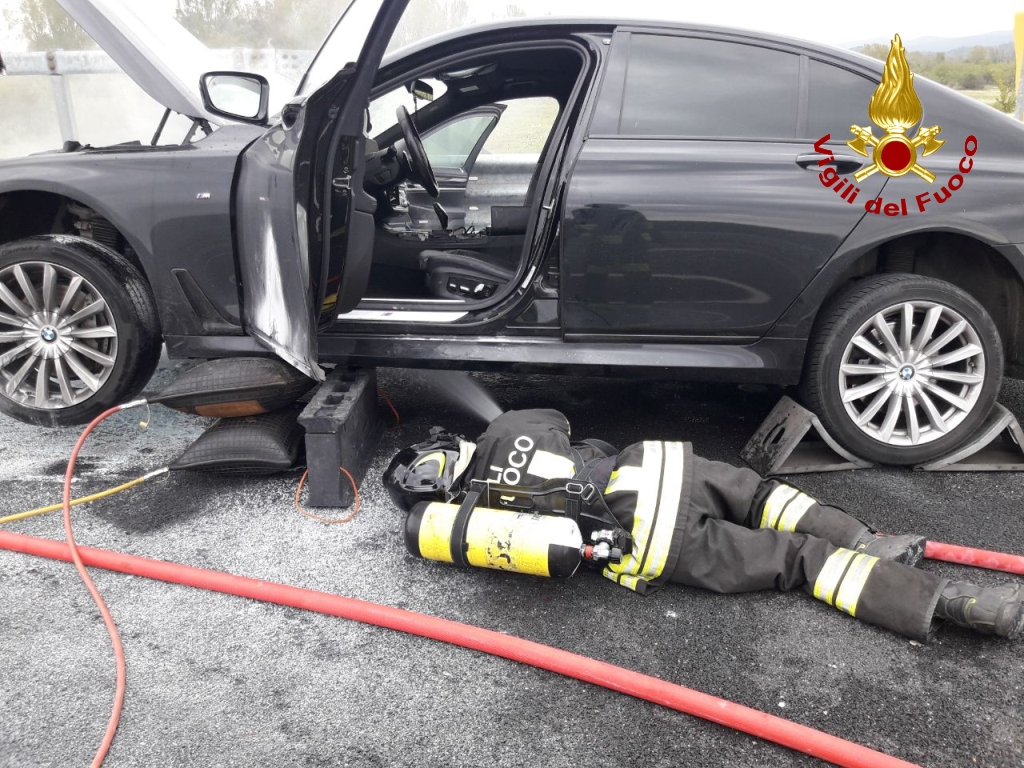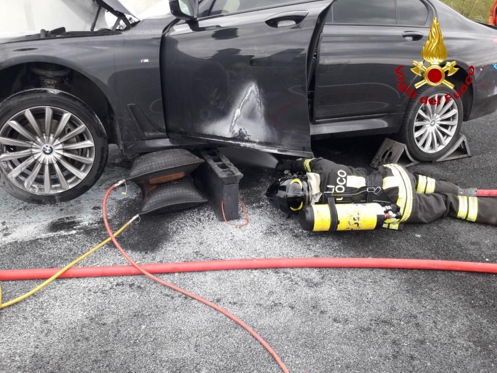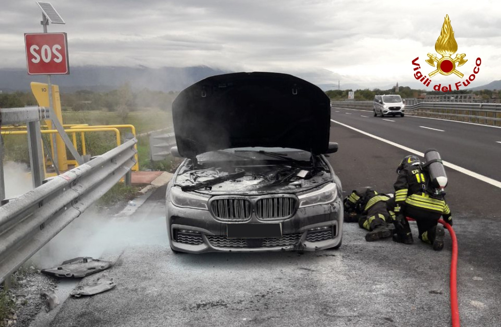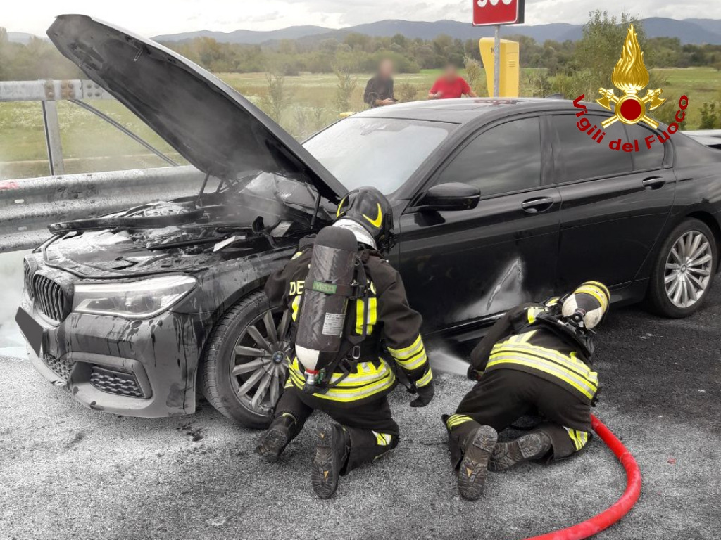 La Bmw s'incendia all'improvviso in A34: conducente in salvo
