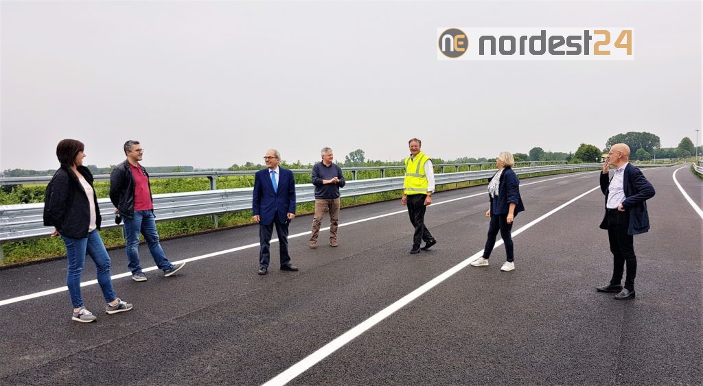San Vito al Tagliamento, 15 giugno 2020 –A San Vito al Tagliamento, nella giornata in cui per tradizione si festeggia il Santo patrono, è l’occasione per la Giunta comunale, guidata dal Sindaco Antonio Di Bisceglie, per un sopralluogo all’atteso cantiere della circonvallazione e per verificare lo stato di avanzamento dei lavori dell’importante infrastruttura viaria.