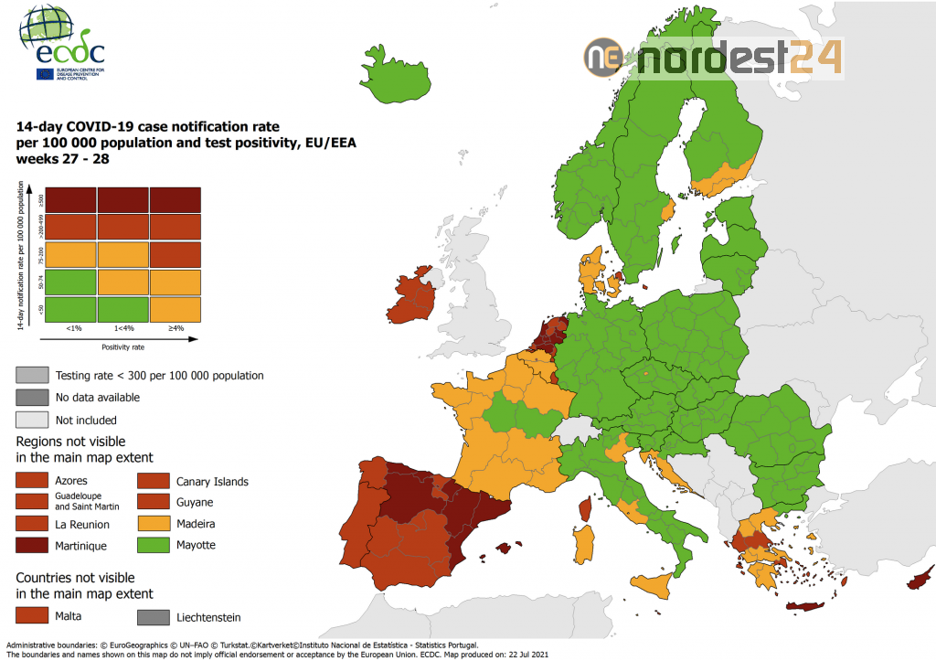 L'Ecdc ha pubblicato mappe aggiornate sull'incidenza del contagio da Covid, con i numeri di casi per abitante, che aumentano in tutta Europa.