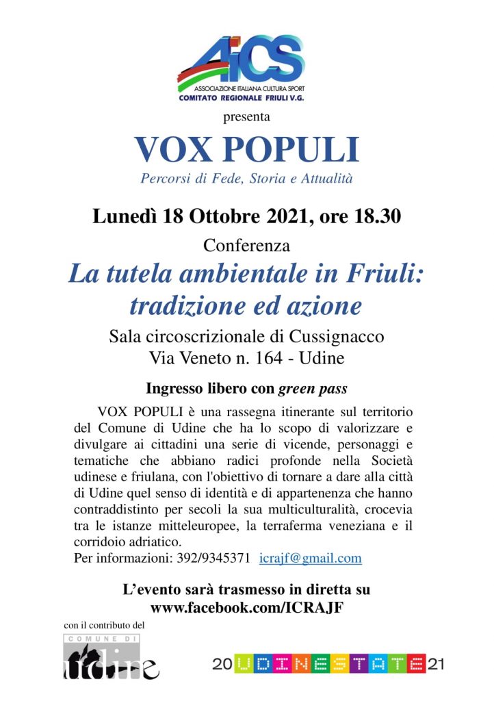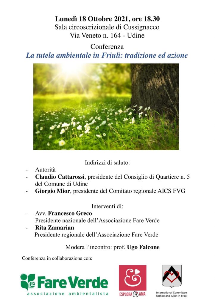 La conferenza, incentrata sul tema La tutela ambientale in Friuli: tradizione ed azione, vedrà in dialogo