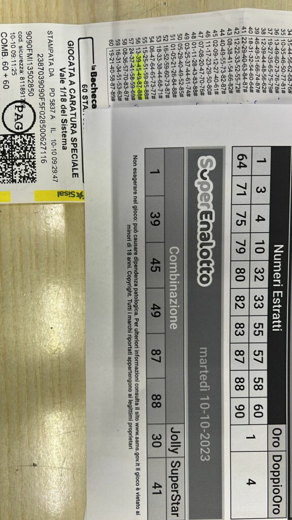 Nella città di Latisana, qualcosa di straordinario ha sfiorato la vita di un cliente abituale della Tabaccheria Sclosa in Piazzale Osoppo 12. L'uomo, che ha preferito rimanere anonimo, ha mancato di un soffio il jackpot del Superenalotto nell'estrazione di ieri, 10 ottobre 2023.