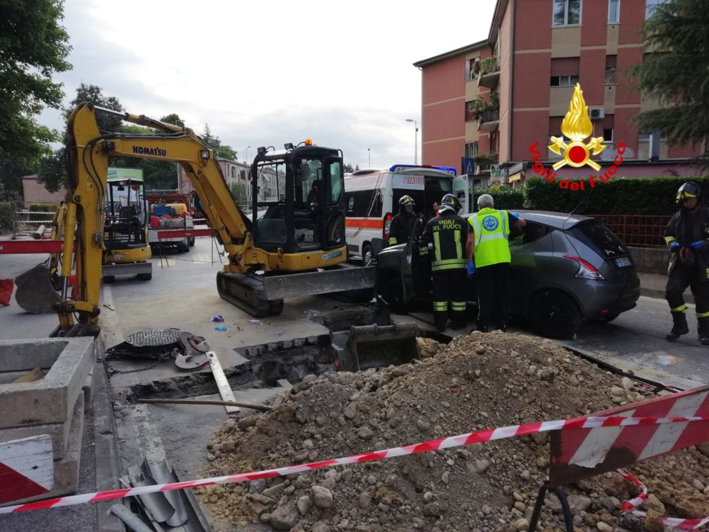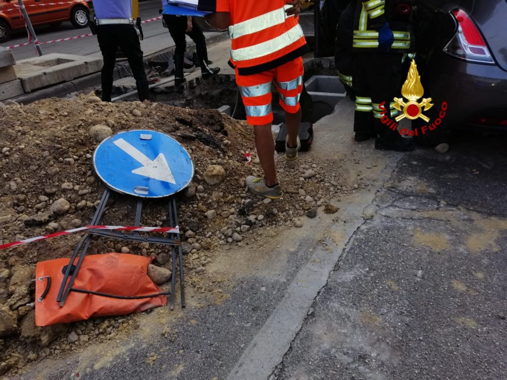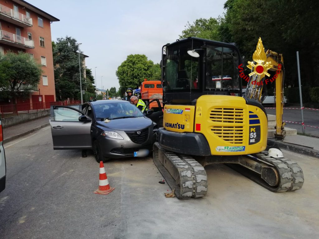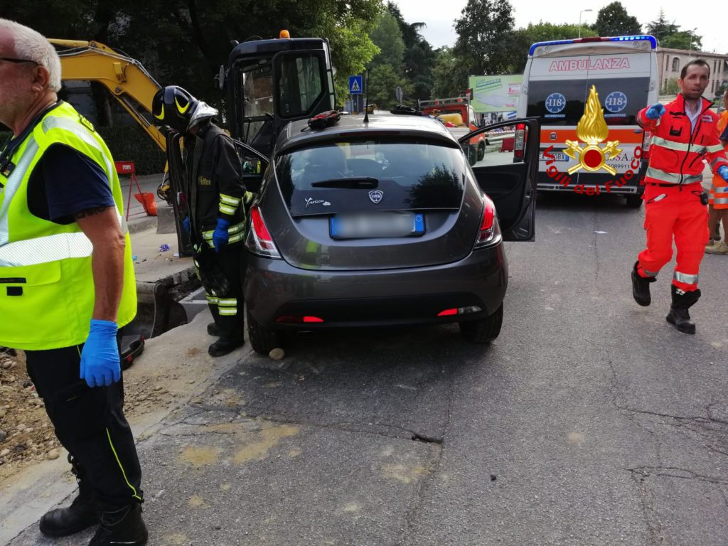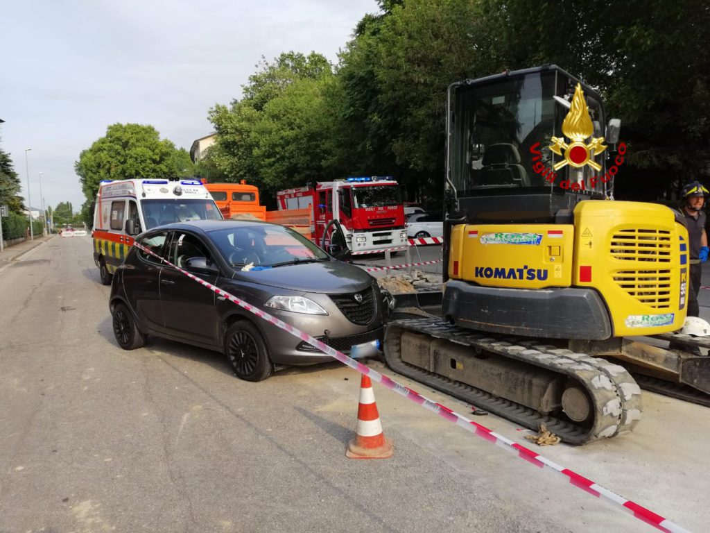 La lancia Y 10 proveniente da via Granatieri di Sardegna probabilmente per un malore della conducente, ha invaso il cantiere andando a urtare contro la benna distaccata di uno escavatore, che ha sua volta trascinato l’operaio in uno scavo.