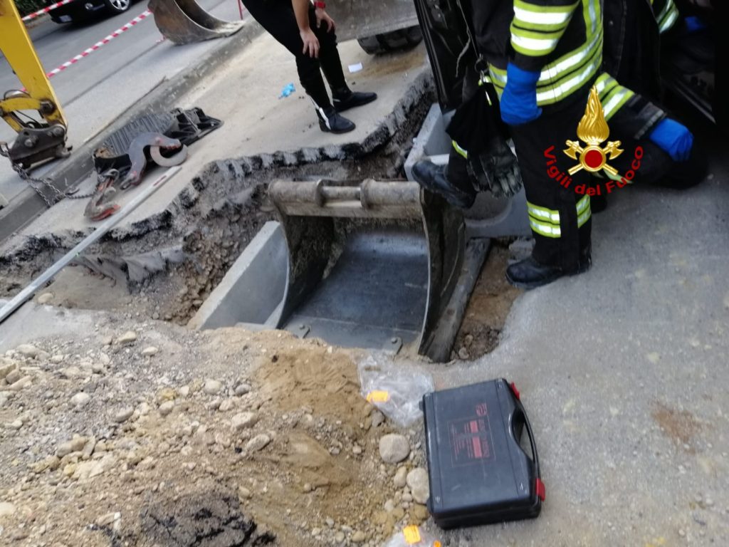 La squadra dei pompieri arrivati dalla vicina centrale, hanno rimosso la benna e liberato l’uomo finito incastrato in un pozzetto di cemento. L’uomo è stato stabilizzato dal personale del suem 118 e trasferito in ospedale.