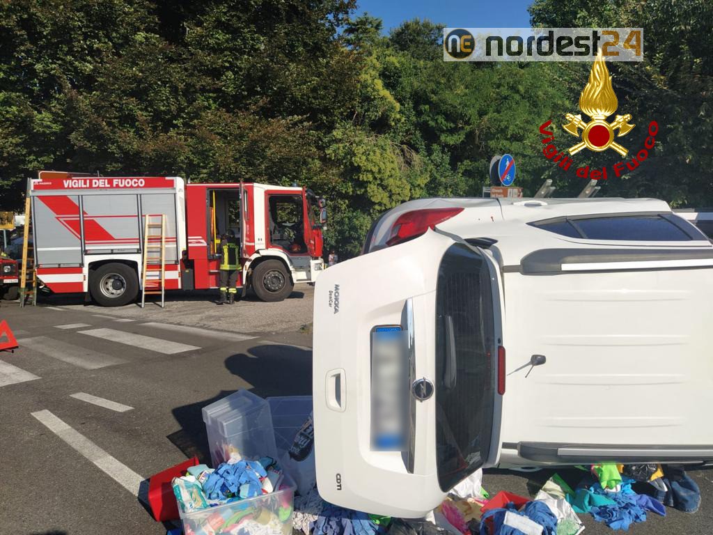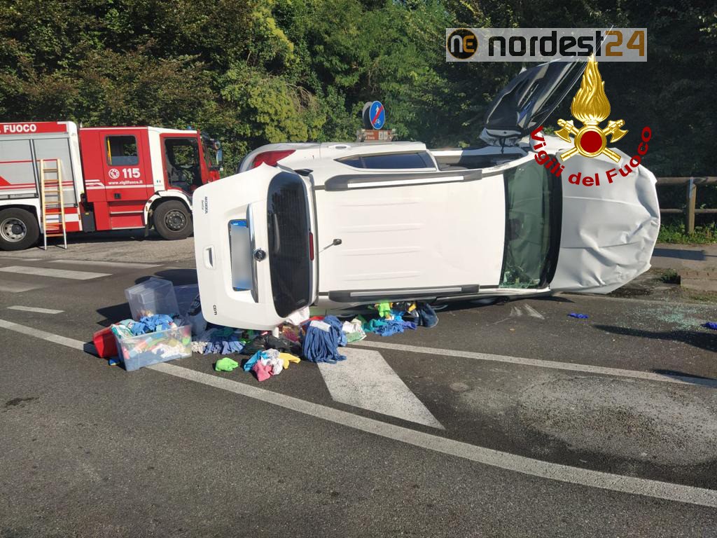 L'auto si rovescia su un fianco e rimangono incastri tra le lamiere